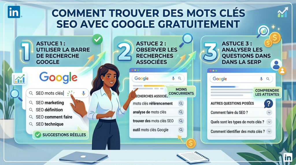 Dans cet article, vous allez découvrir comment trouver des mots clés SEO grâce à Google, comprendre leur logique et analyser la SERP simplement, même sans compétence technique.